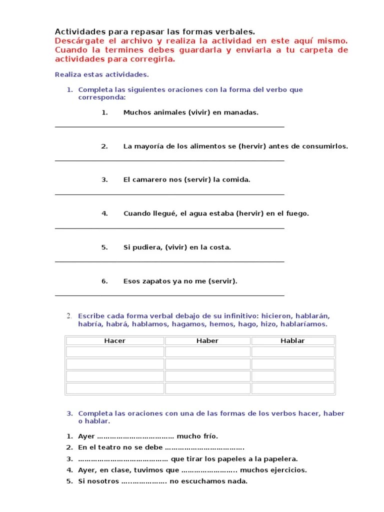 Para ella el tiempo es muy importante, aunque no se ve ni se toca. En este recurso educativo encontraras algunos ejercicios de el verbo y su conjugación. Ficha con ejercicios sobre el verbo, para niños de 2do grado de educación primaria. Los alumnos estudian el vocabulario de los verbos en el tercer grado (tiempo presente, tiempo . Encontraras una gran diversidad de actividades de los verbos para que los niños de tercero de primaria puedan aprenden de forma divertida y didáctica, ahora te . Puedes hacer los ejercicios online o descargar la ficha como pdf. Ficha con ejercicios sobre el verbo, para niños de 2do grado de educación primaria. Fichas para repasar los verbos en primaria. Fichas adicionales de comunicación para tercer grado de primaria. Subraya los verbos de las siguientes oraciones. Suscríbete al blog por correo electrónico. Ficha online de el verbo para tercero de primaria. Para referirse a acciones que se realizaron en el pasado. Coloreándolos con tres colores diferentes. Puedes hacer los ejercicios online o descargar la ficha como pdf.